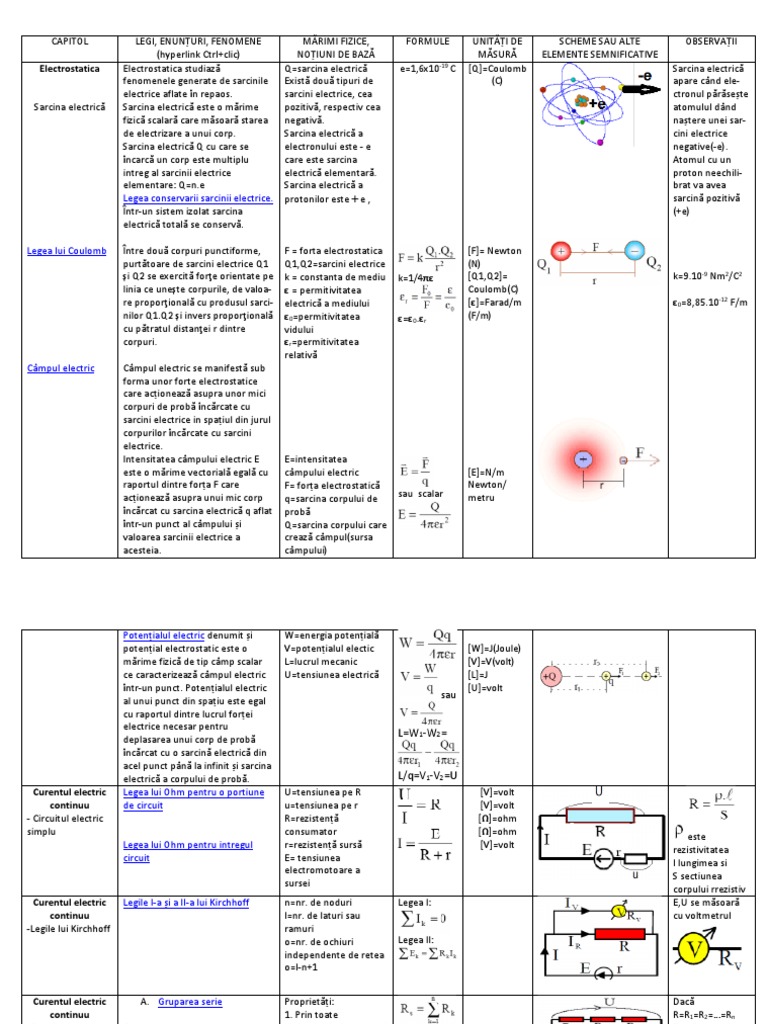 CAPITOL LEGI, ENUNȚURI, FENOMENE MĂRIMI FIZICE, FORMULE UNITĂȚI DE SCHEME SAU ALTE OBSERVAȚII