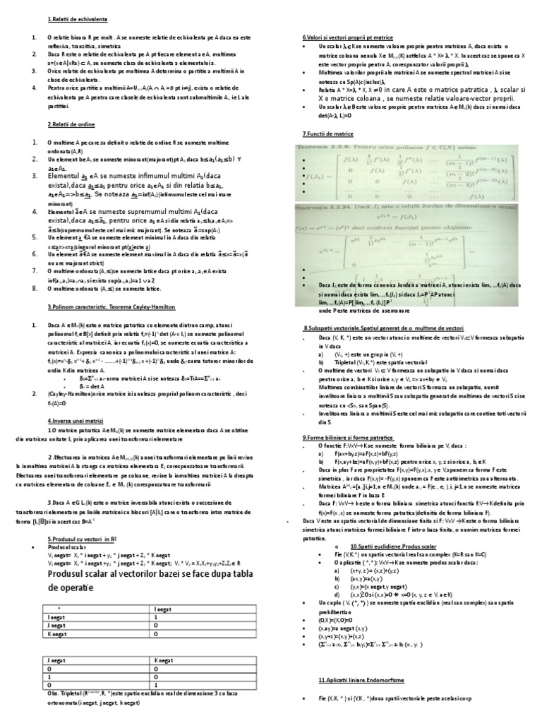 1. O relatie binara R pe mult . A se numeste relatie de echivalenta pe A daca ea este [Link] si vectori proprii pt matrice