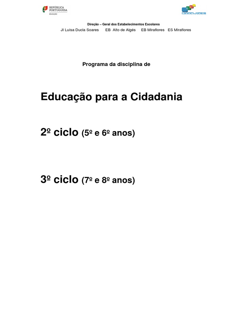 cidadania propomos que no segundo ciclo e nos dois primeiros anos do terceiro ciclo sejam