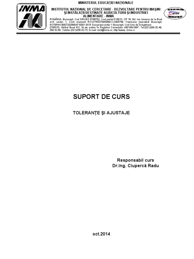 1.5. Unitate de toleranţă, calitaţi, clase de precizie
