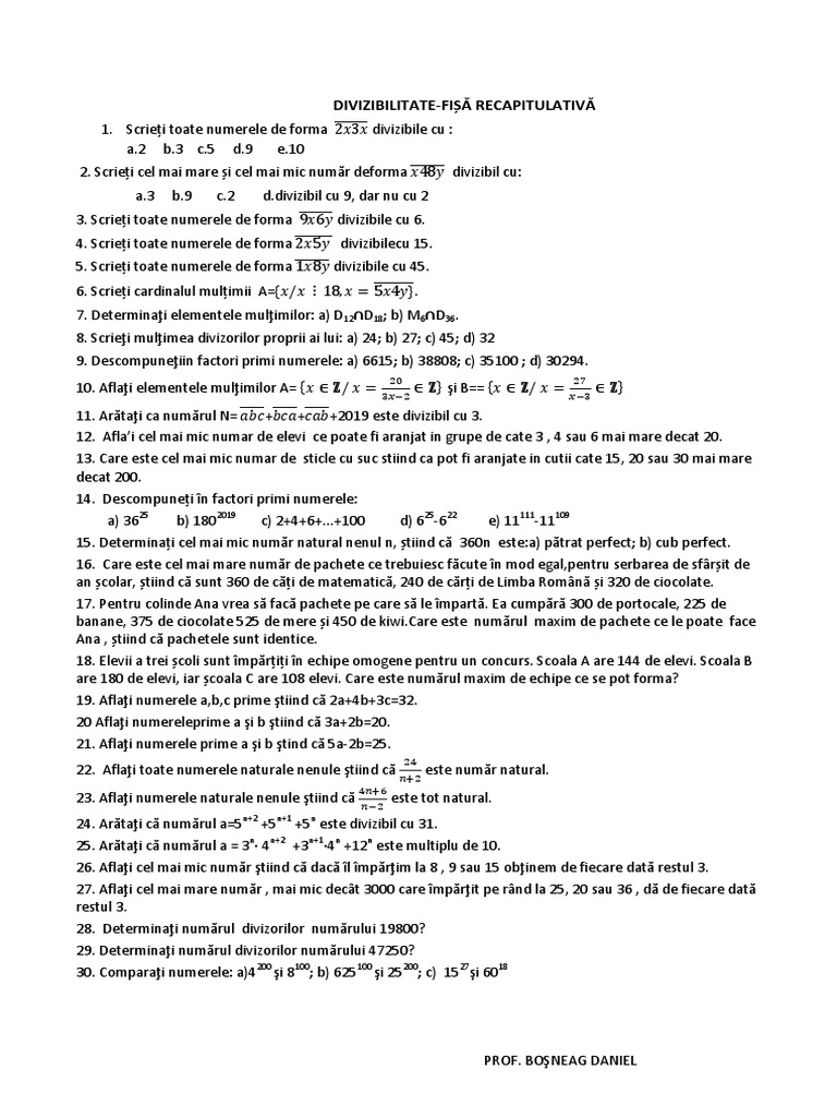 DIVIZIBILITATE-FIȘĂ RECAPITULATIVĂ
