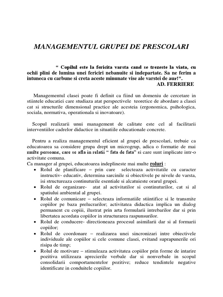 MANAGEMENTUL GRUPEI DE PRESCOLARI