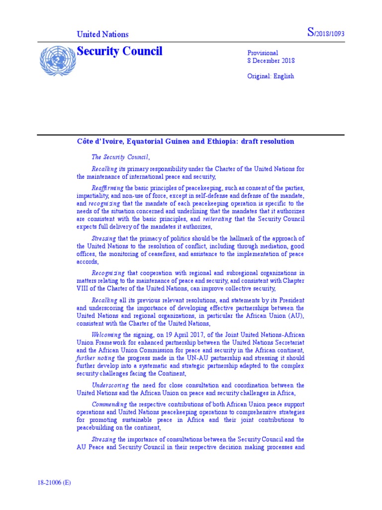 Côte d’Ivoire, Equatorial Guinea and Ethiopia: draft resolution