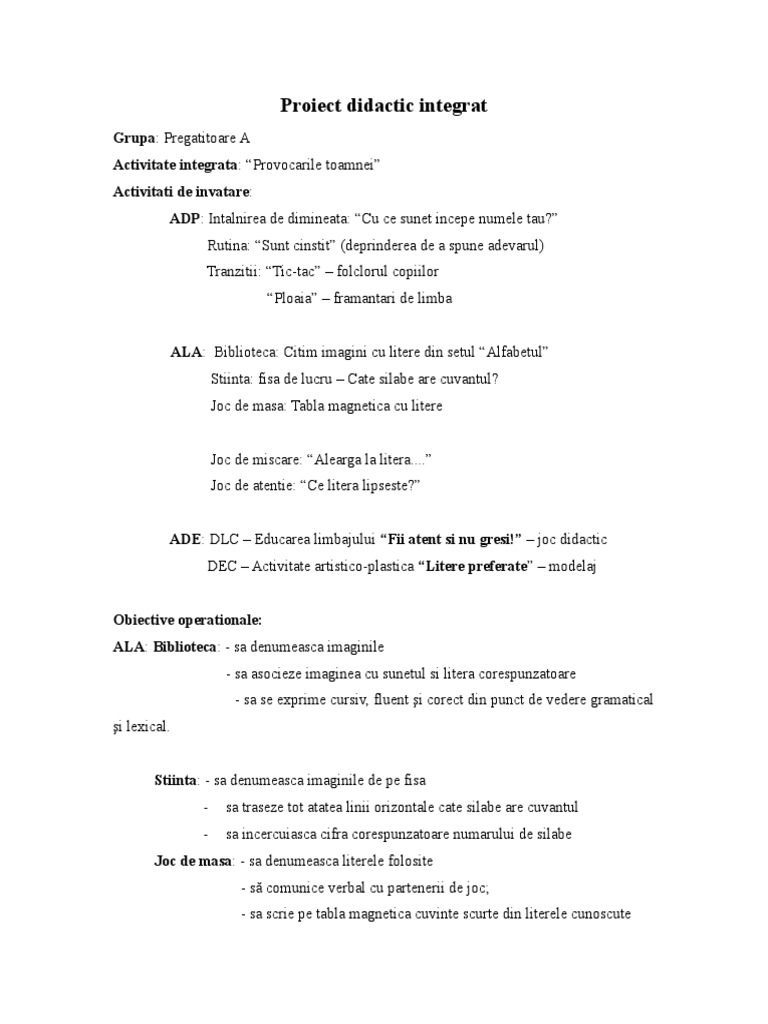 Proiect didactic integrat