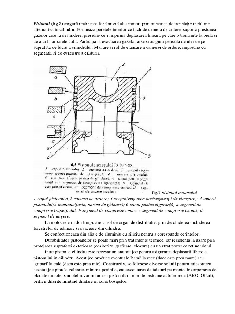 Pistonul (fig 8) asigură realizarea fazelor ciclului motor, prin miscarea de translaţie rectilinie