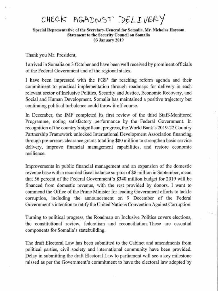 Statement to the Security Council on Somalia