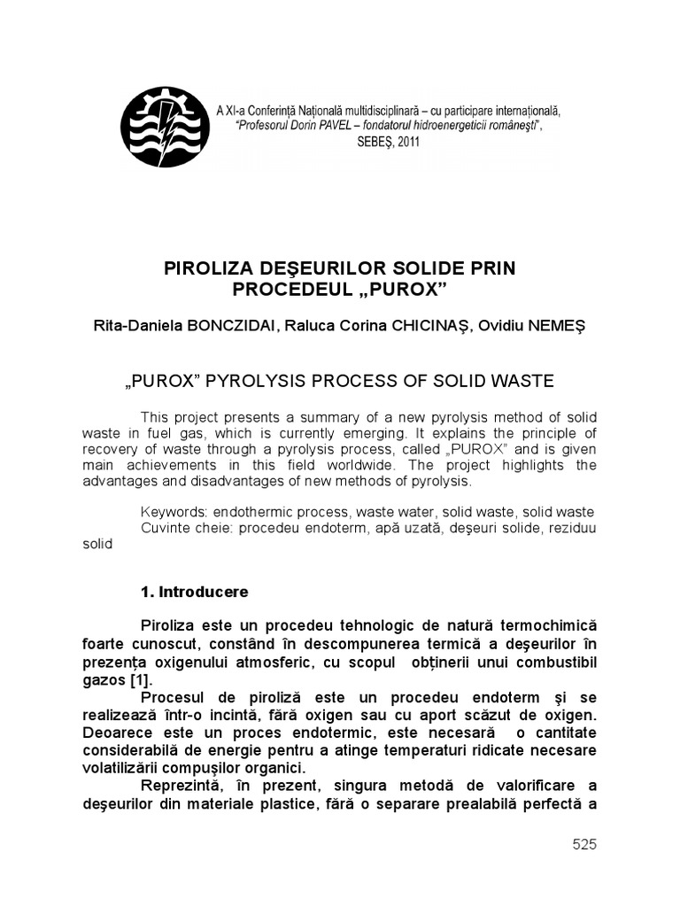 „PUROX” PYROLYSIS PROCESS OF SOLID WASTE
