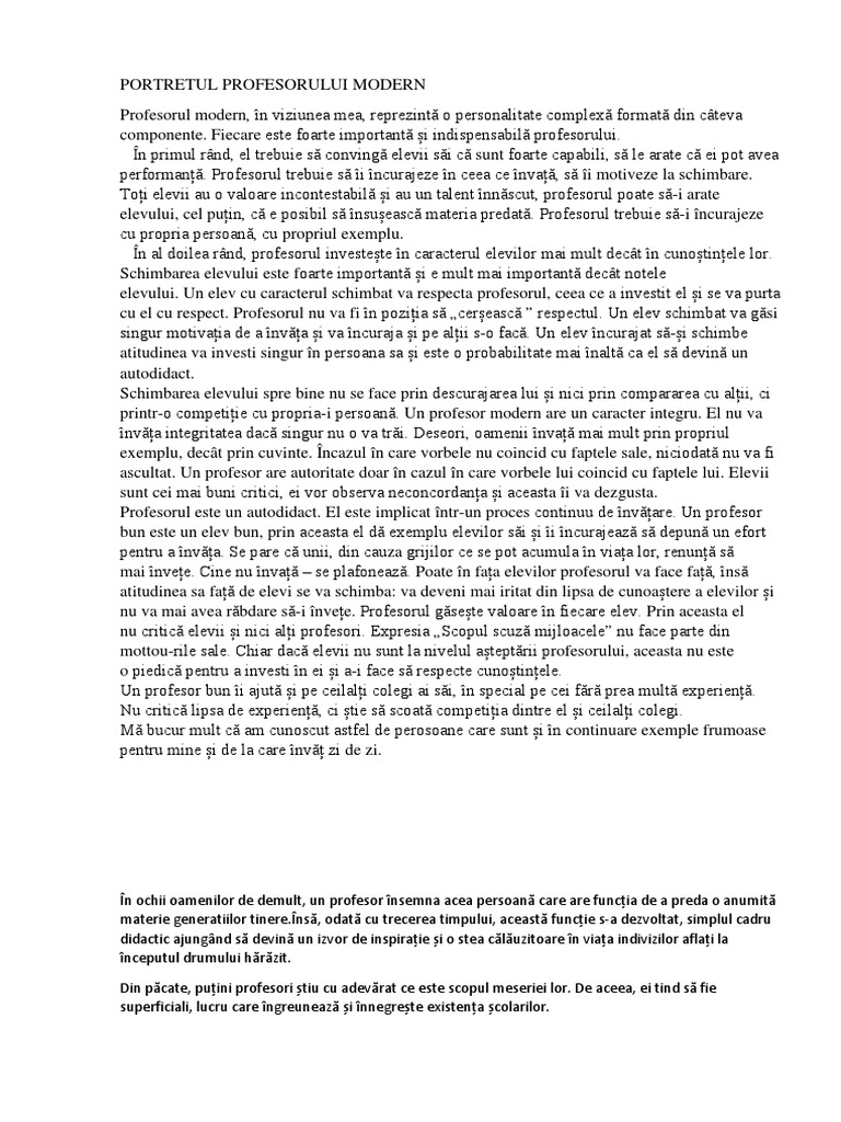 printr-o competiție cu propria-i persoană. Un profesor modern are un caracter integru. El nu va