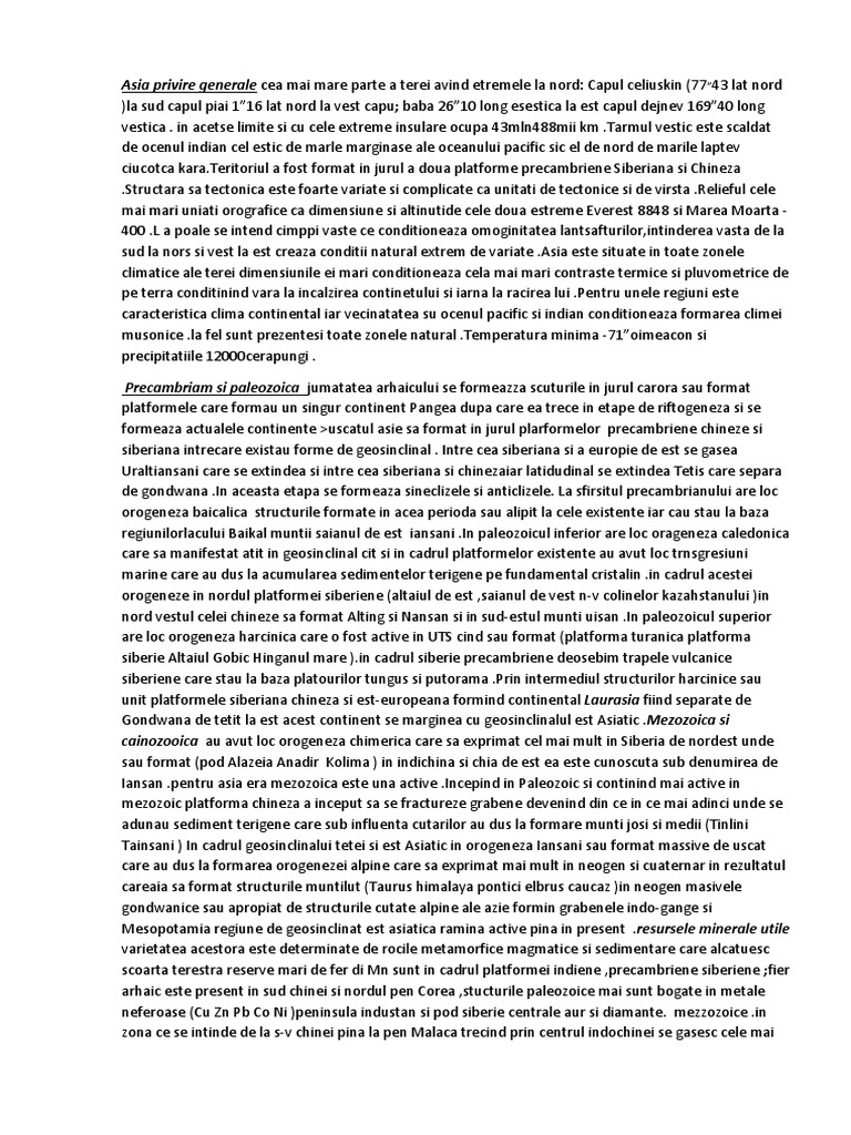formeaza actualele continente >uscatul asie sa format in jurul plarformelor precambriene chineze si