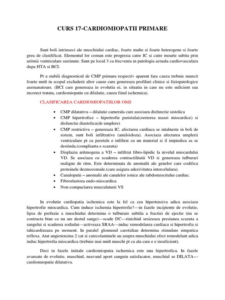 cardiomiopatie primitiva. Cardiomiopatiile primitive au cauza dar ea e genetica, modificari