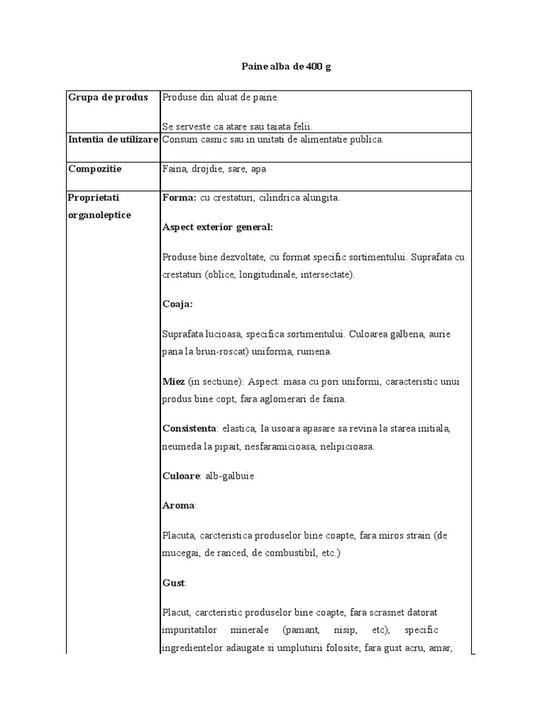 moderne la temperatura de 255 °C timp de 18 minute. Dupa coacere, painea-produs finit este