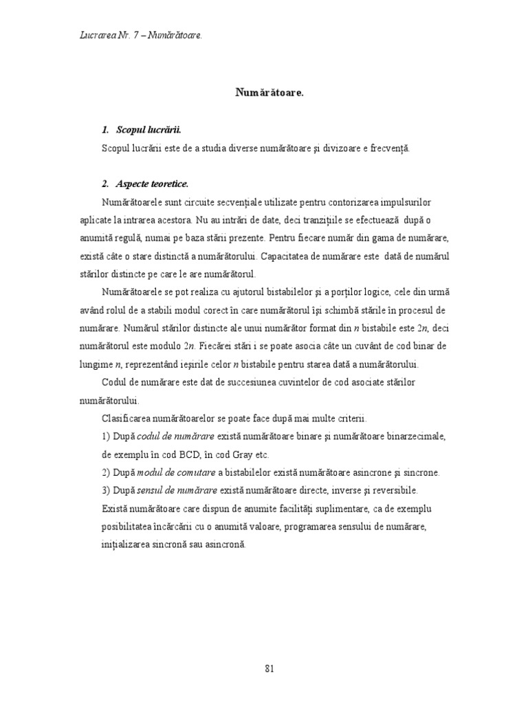 Lucrarea Nr. 7 – Numărătoare.