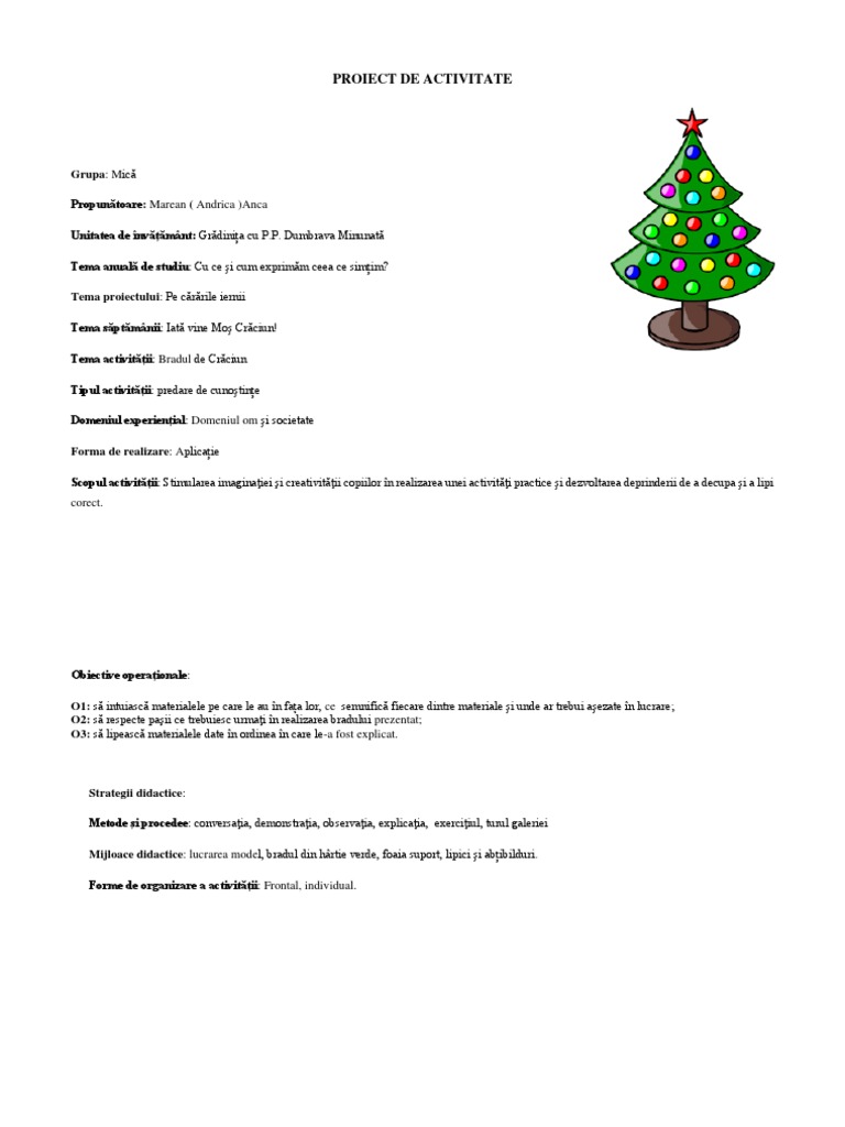 Tema activității: Bradul de Crăciun