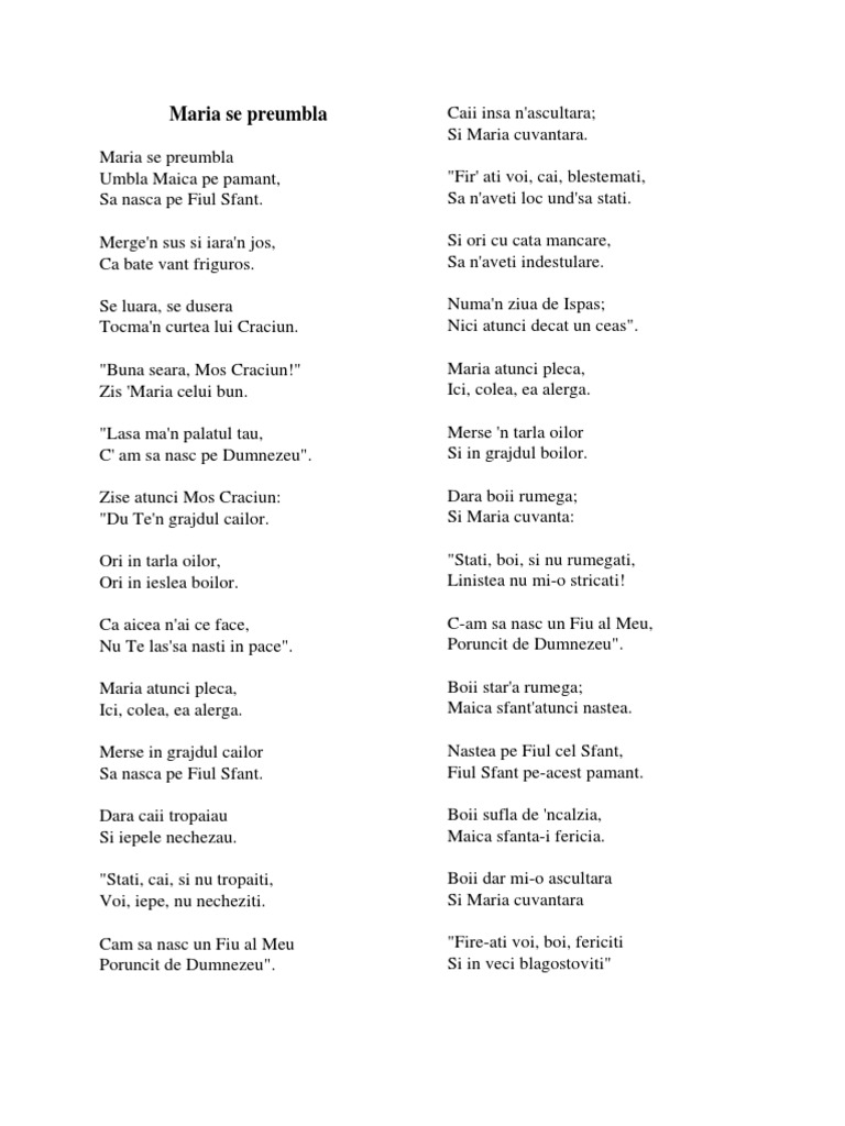 Maria se preumbla Caii insa n'ascultara;