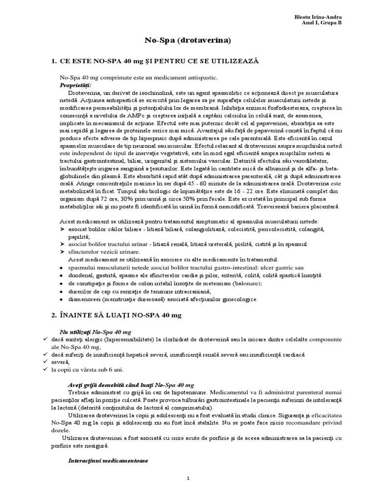 1. CE ESTE NO-SPA 40 mg ŞI PENTRU CE SE UTILIZEAZĂ