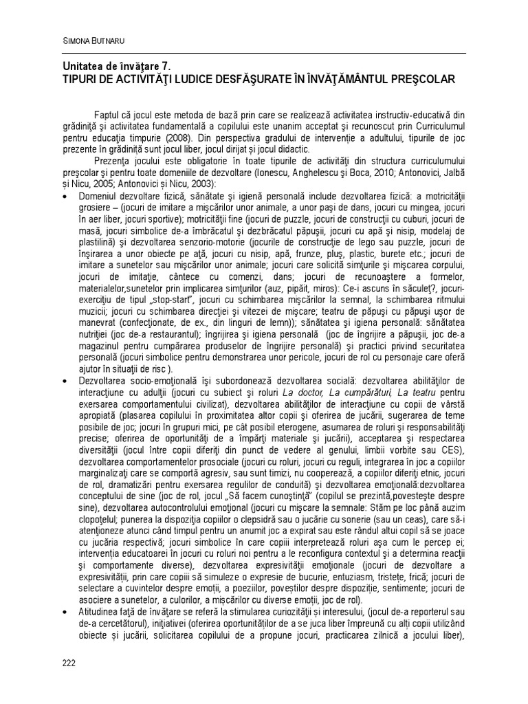 preşcolar şi pentru toate domeniile de dezvoltare (Ionescu, Anghelescu şi Boca, 2010; Antonovici, Jalbă