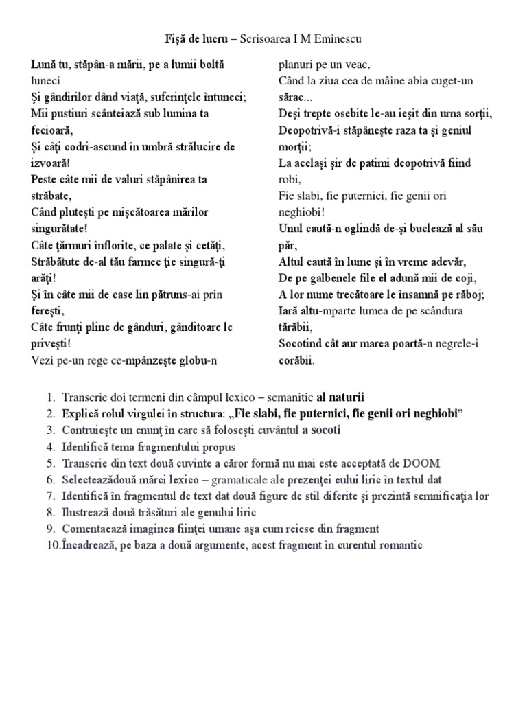 10.Încadrează, pe baza a două argumente, acest fragment în curentul romantic