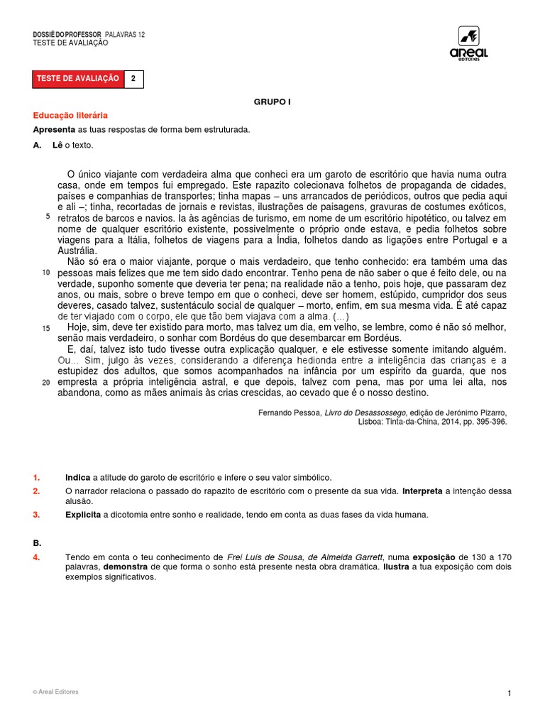 e na atualidade, como adulto. Enquanto no passado o garoto era genuíno, • Aspetos de estruturação do discurso e correção linguística (F) ... 12 pontos