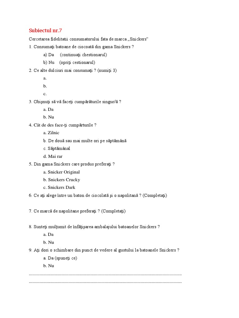 Cercetarea fidelitatii consumatorului fata de marca „Snickers”