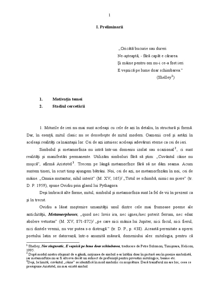De aceea, în lucrarea Univers mitologic în Metamorfoze ne propunem să analizăm, din