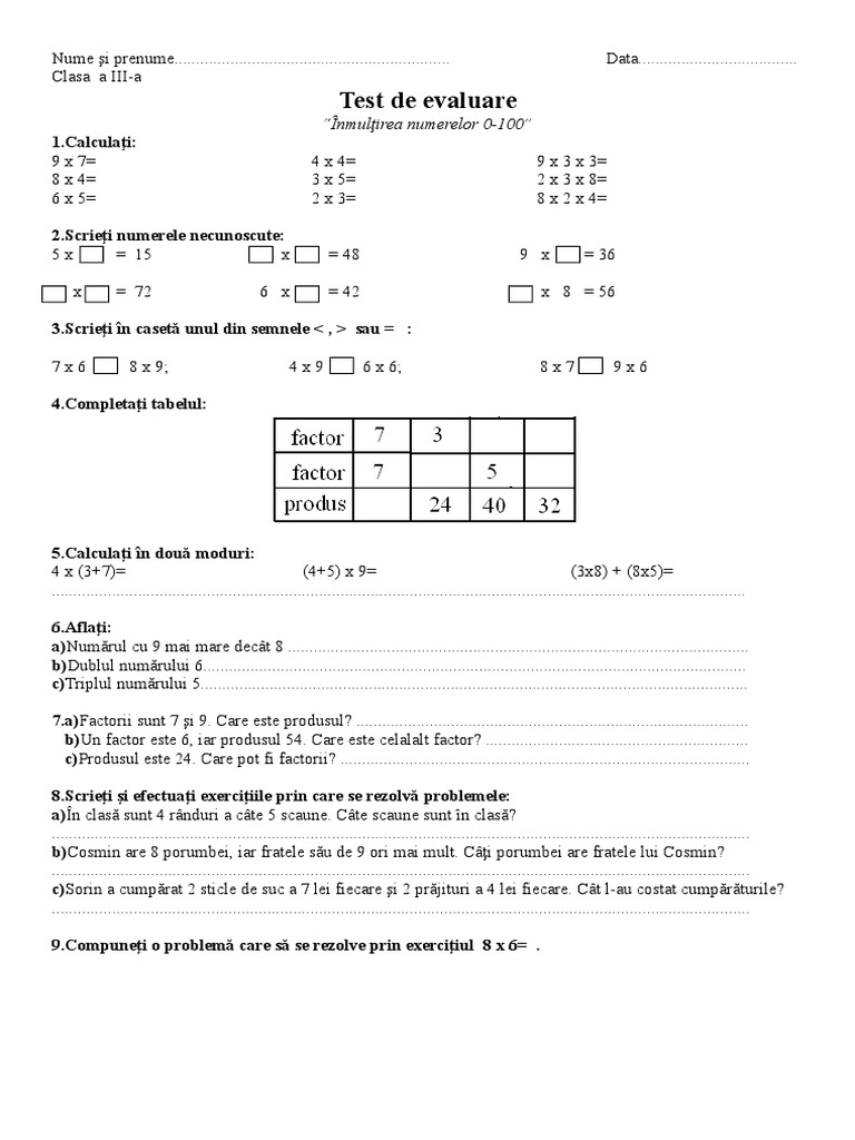 7.a)Factorii sunt 7 şi 9. Care este produsul? ...........................................................................................