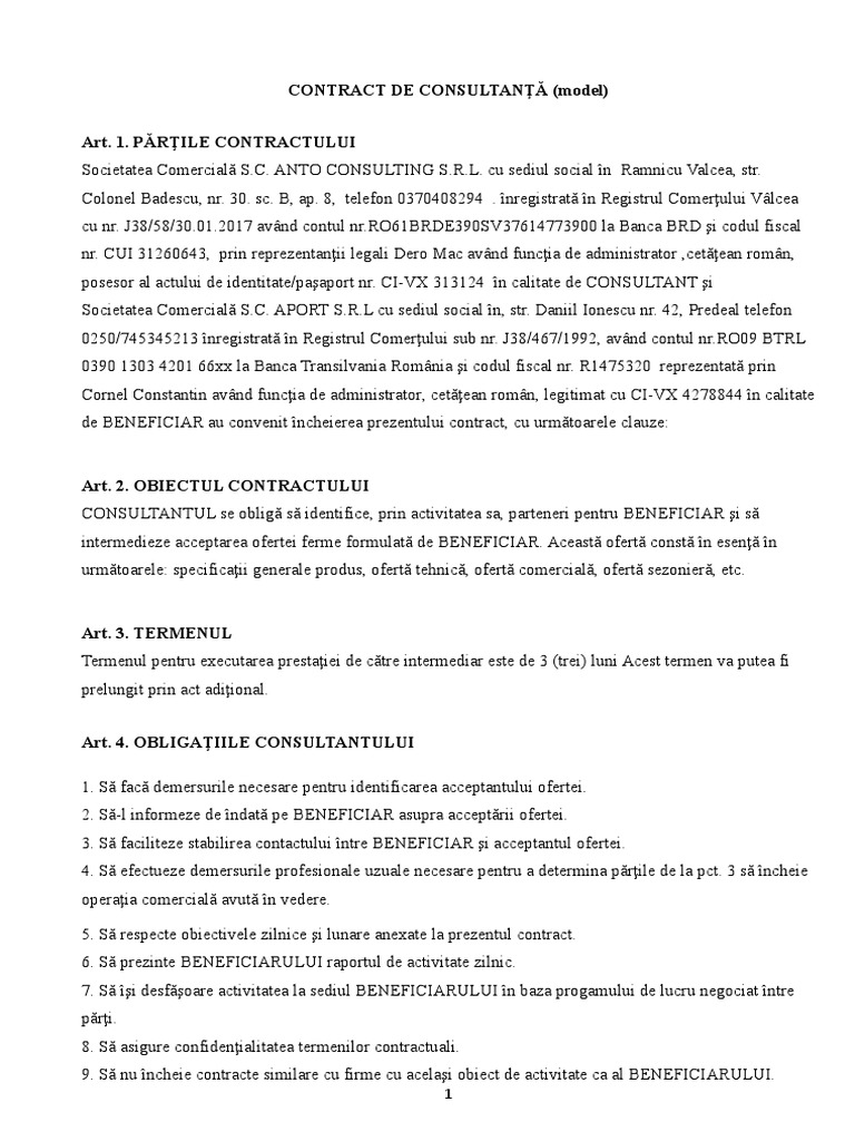 CONSULTANTUL se obligă să identifice, prin activitatea sa, parteneri pentru BENEFICIAR şi să