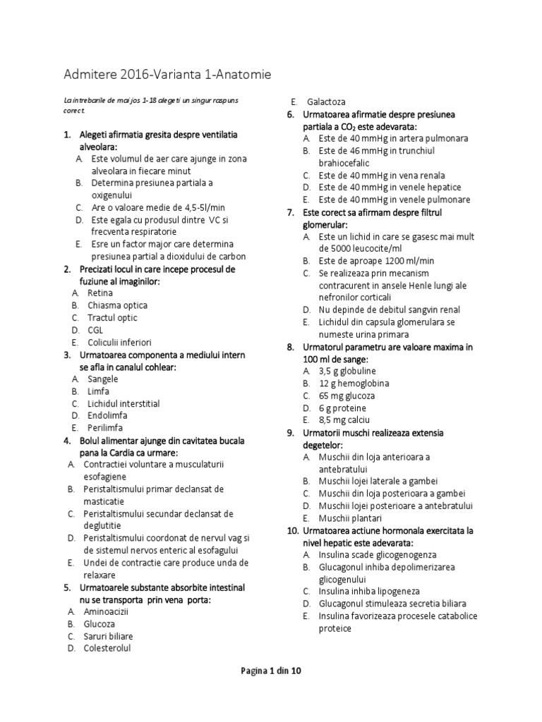 1. Helicotrema 29. Un aminoacid absorbit in intestin ajunge in
