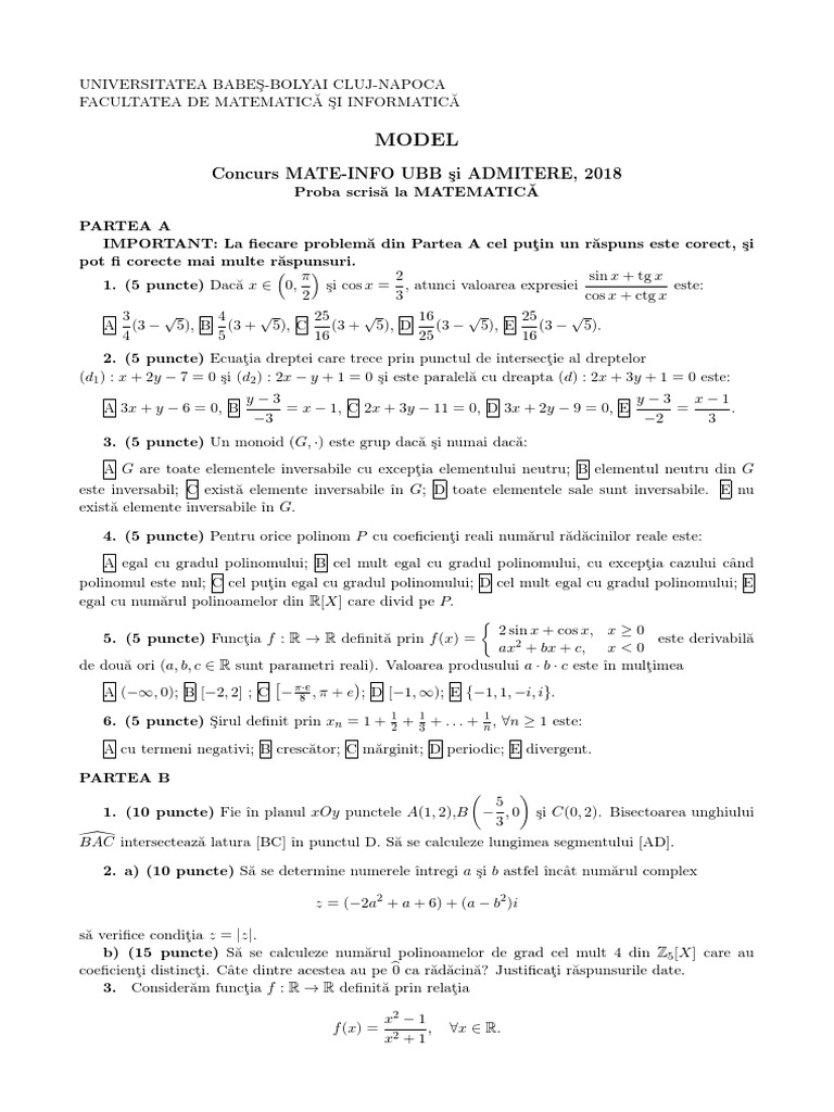 Concurs MATE-INFO UBB şi ADMITERE, 2018