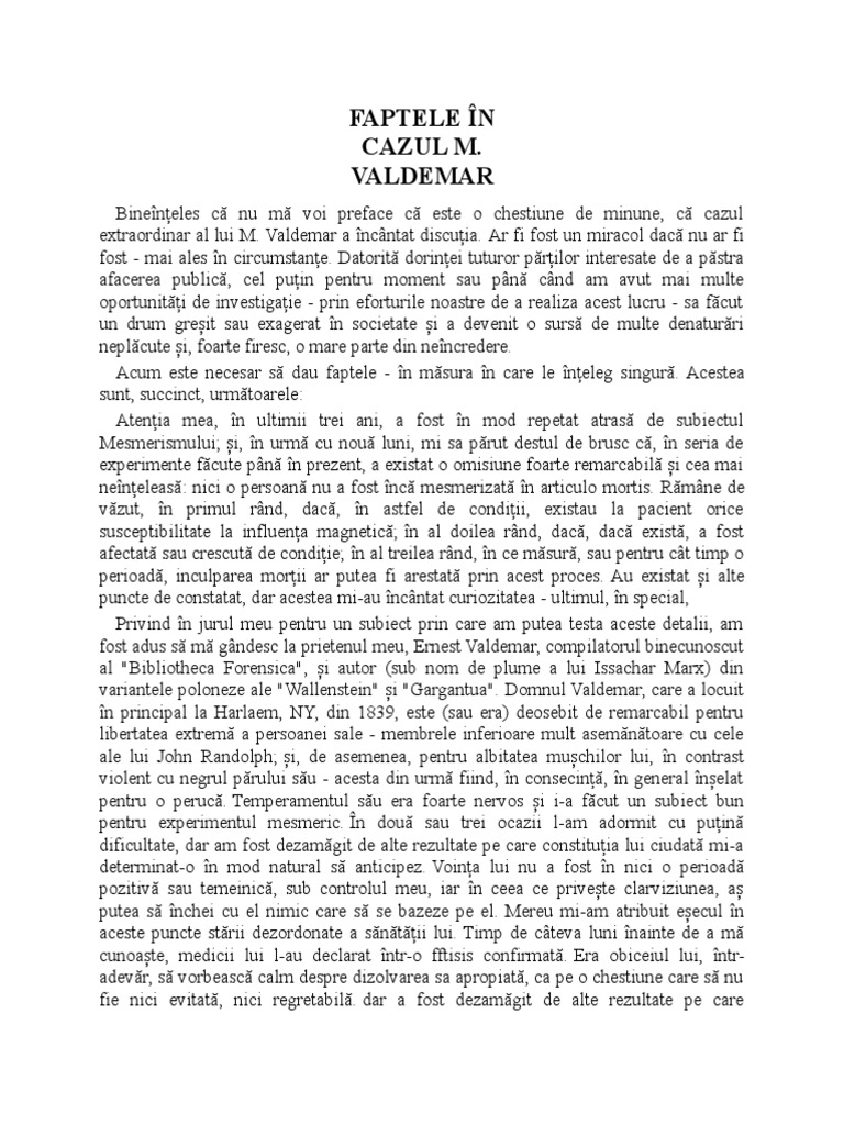 În scopul eliberării lui M. Valdemar din transa mesmerică, am folosit pasajele