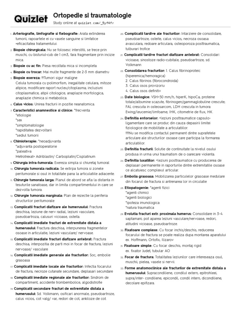 17. Complicatii imediate locale ale fracturilor: Infectia focarului 33. Forme anatomoclinice ale fracturilor de extremitate distala a
