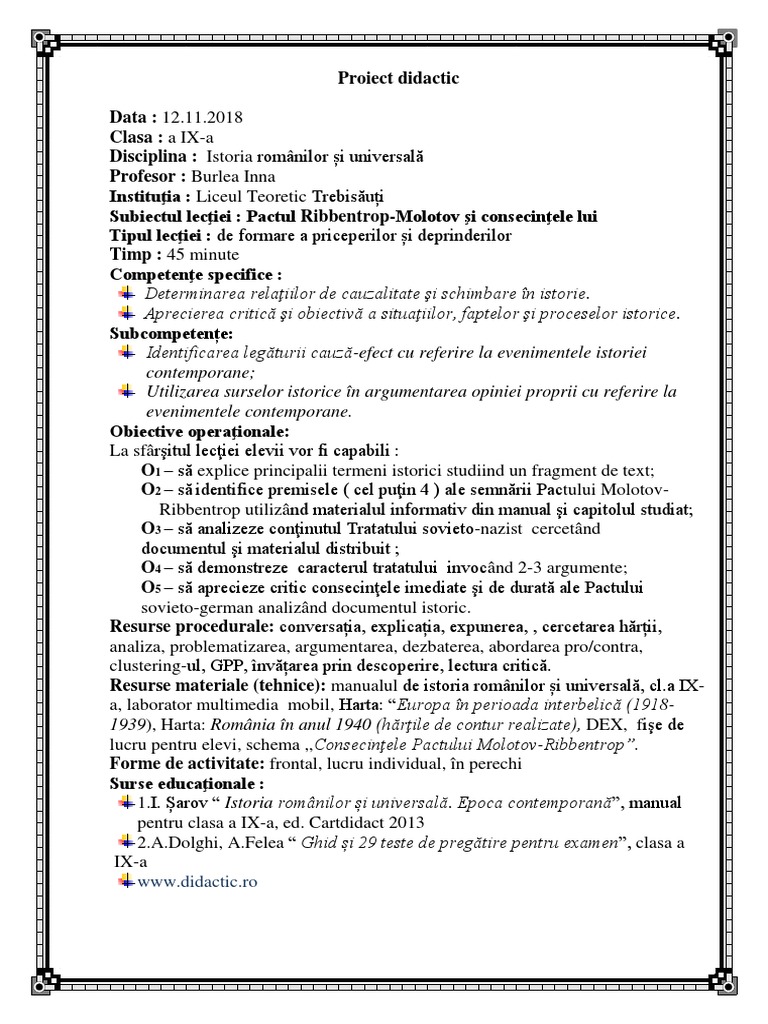 sensului 26-30 ”Pactul Ribbentrop- lecţiei.