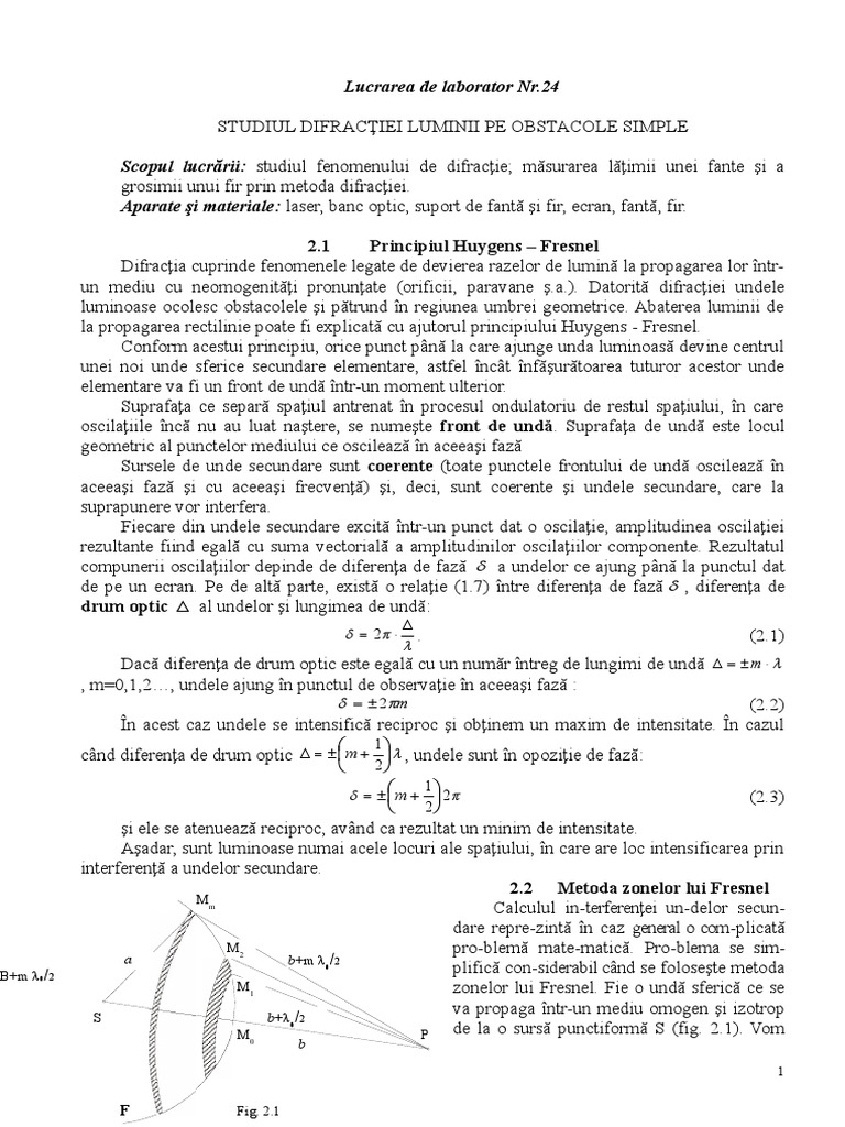STUDIUL DIFRACŢIEI LUMINII PE OBSTACOLE SIMPLE