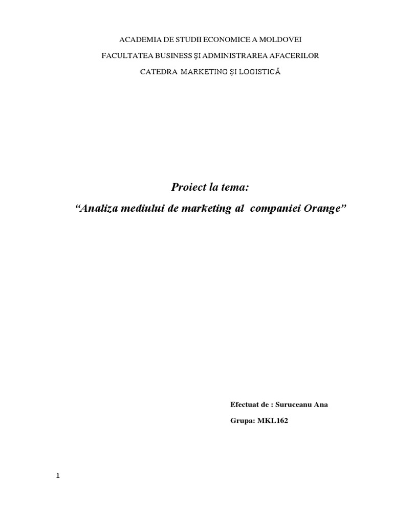 “Analiza mediului de marketing al companiei Orange”