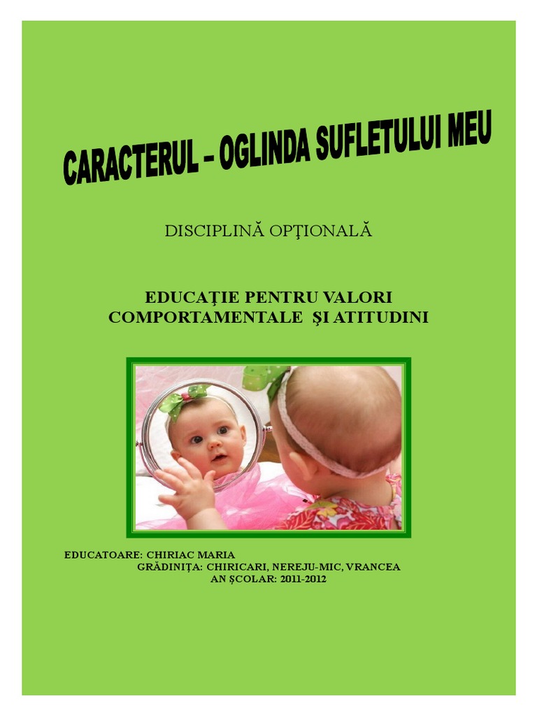 de caracter, îşi vor exersa şi dezvolta deprinderi morale, vor accepta şi respecta