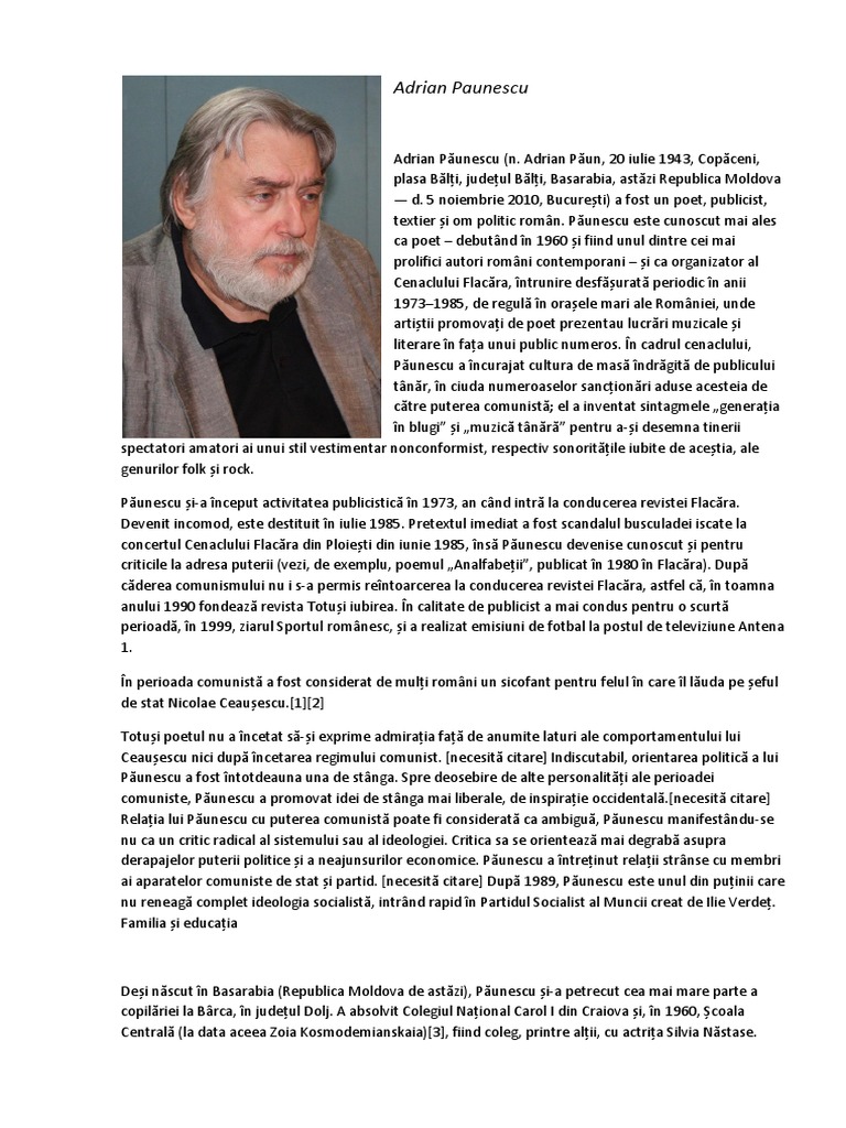 pentru „activități anti-comuniste” de regimul stalinist de după 1945 și din această cauză Păunescu a