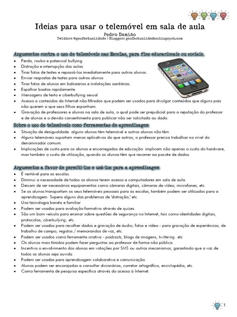 Ideias para usar o telemóvel em sala de aula
