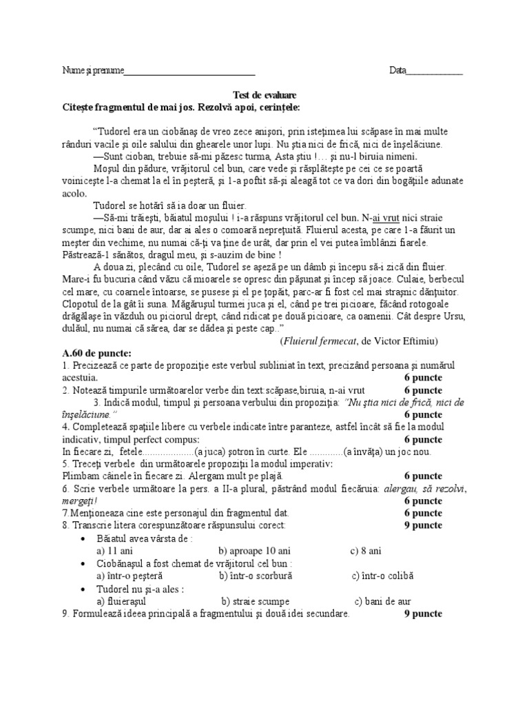 2. Notează timpurile următoarelor verbe din text:scăpase,biruia, n-ai vrut 6 puncte