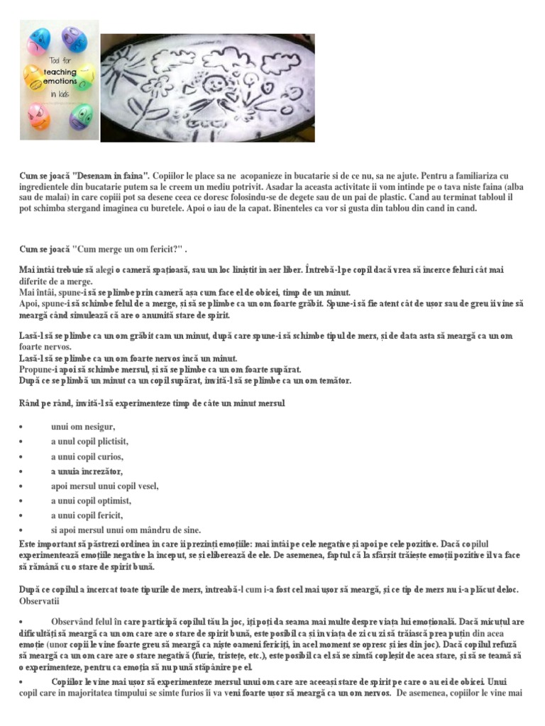 Prin acest joc, copilul învaţă şi faptul că el poate să aibă acces la o stare de spirit pozitivă, dacă doreşte acest lucru. Pentru