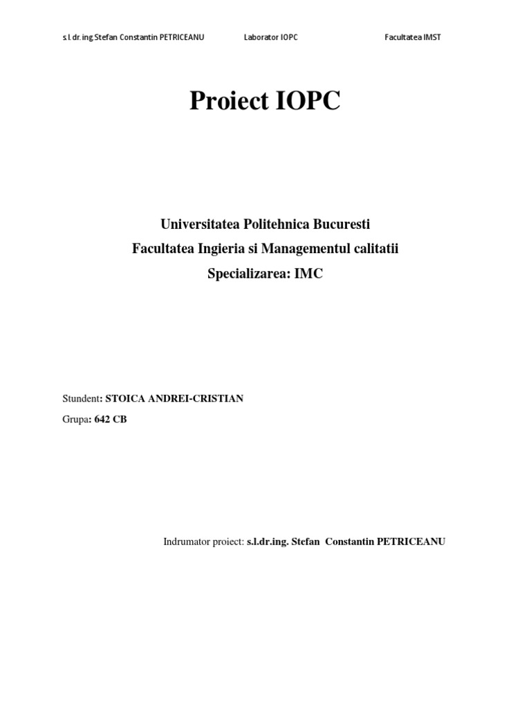 [Link] Constantin PETRICEANU Laborator IOPC Facultatea IMST
