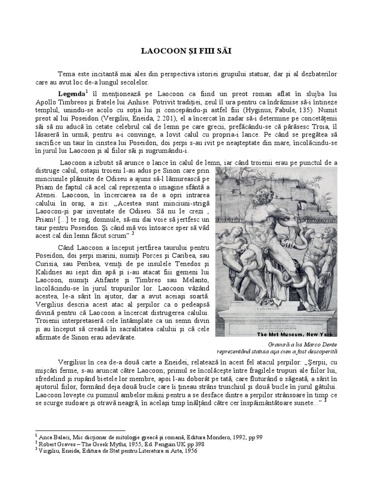 Legenda1 îl menţionează pe Laocoon ca fiind un preot roman aflat în slujba lui
