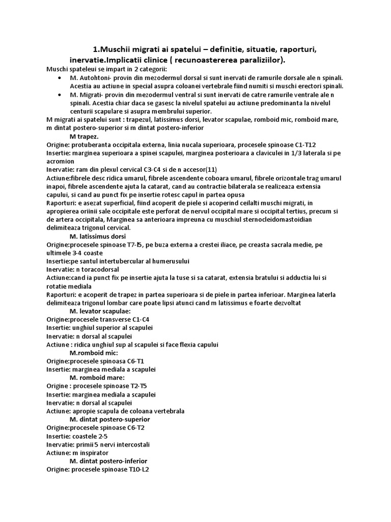 M migrati ai spatelui sunt : trapezul, latissimus dorsi, levator scapulae, romboid mic, romboid mare,
