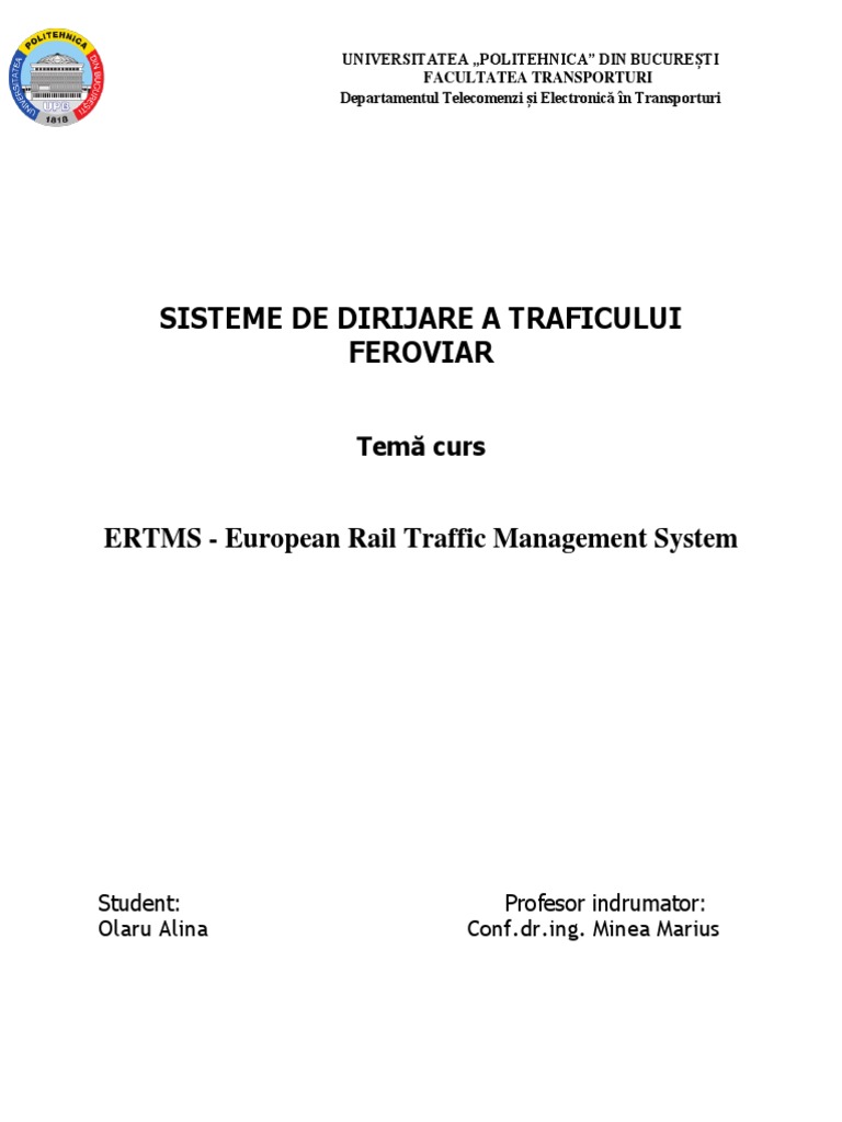 Sistemul ERTMS (European Rail Traffic Management a System) prin componentele sale