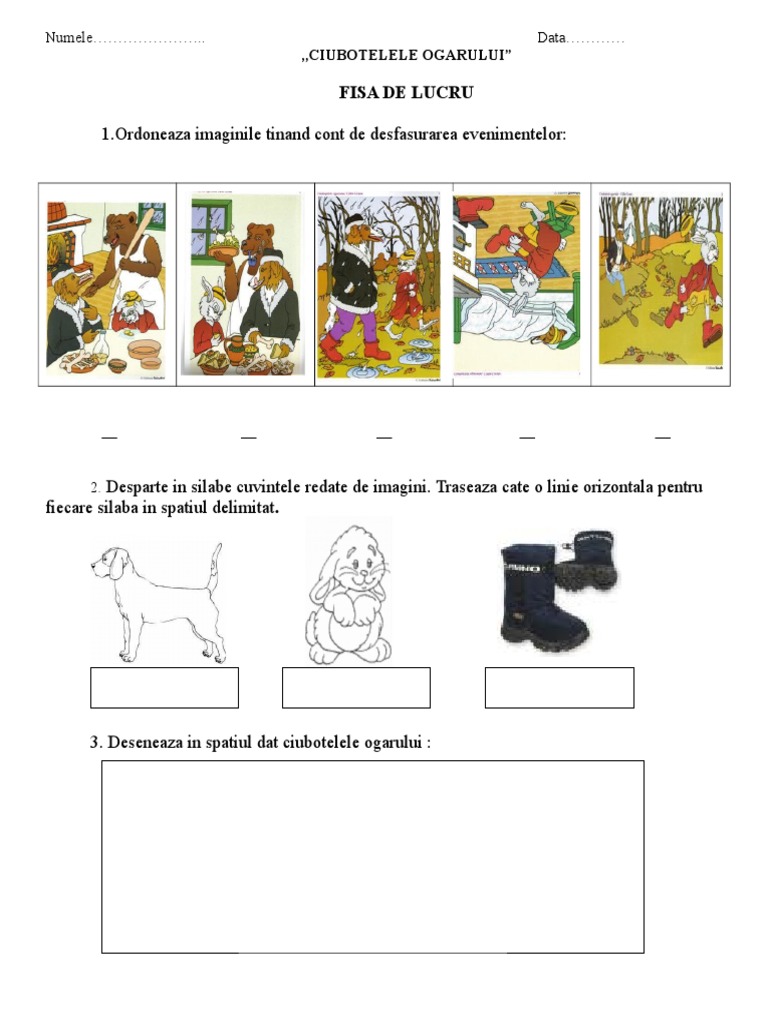 3. Deseneaza in spatiul dat ciubotelele ogarului :