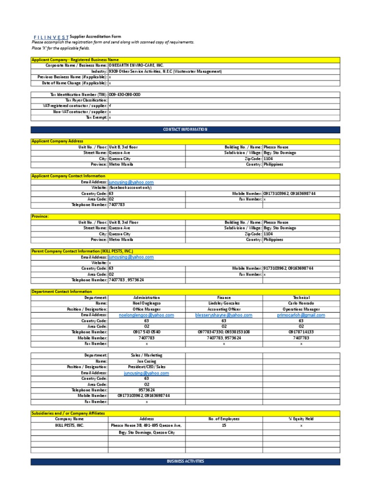 I hereby certify that all information provided here in the Supplier Registration Form and in all supporting documents are true and correct. I hereby authorize Filinvest