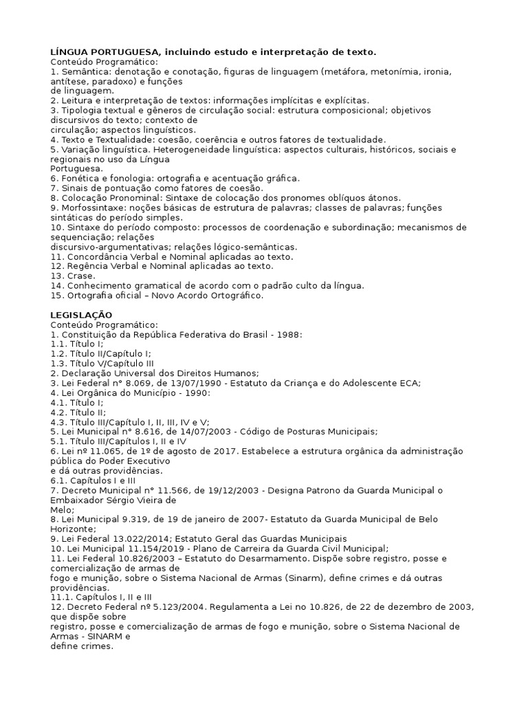 LÍNGUA PORTUGUESA, incluindo estudo e interpretação de texto.