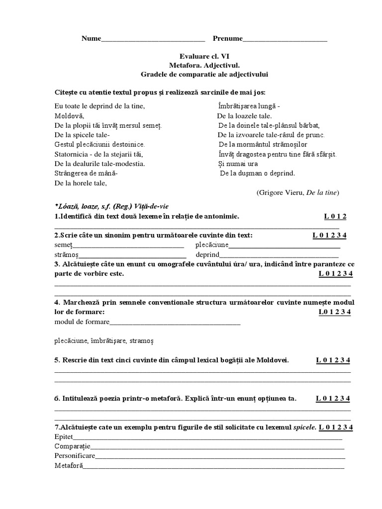 6. Intitulează poezia printr-o metaforă. Explică într-un enunț opțiunea ta. L01234