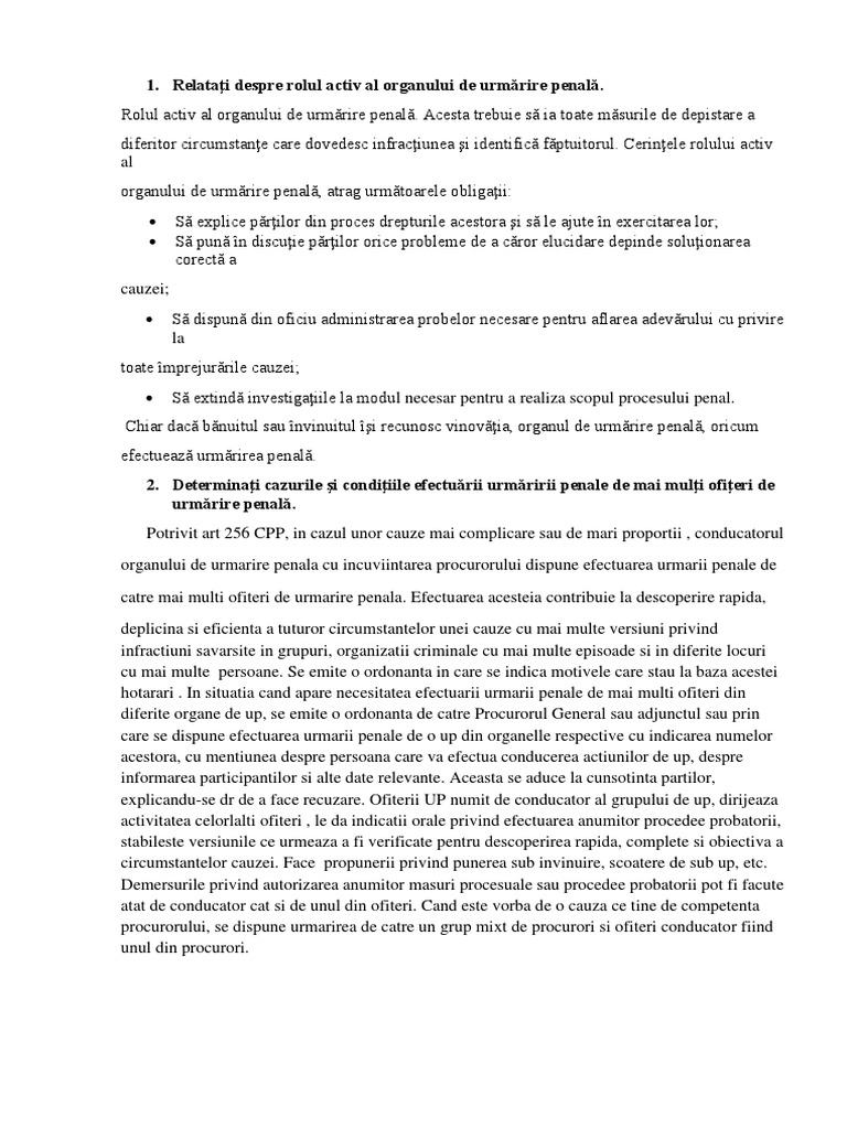 1. Relataţi despre rolul activ al organului de urmărire penală.