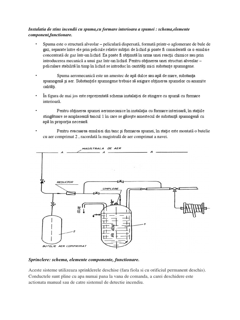 • În figura de mai jos este reprezentatã schema instalaţiei de stingere cu spumã cu formare