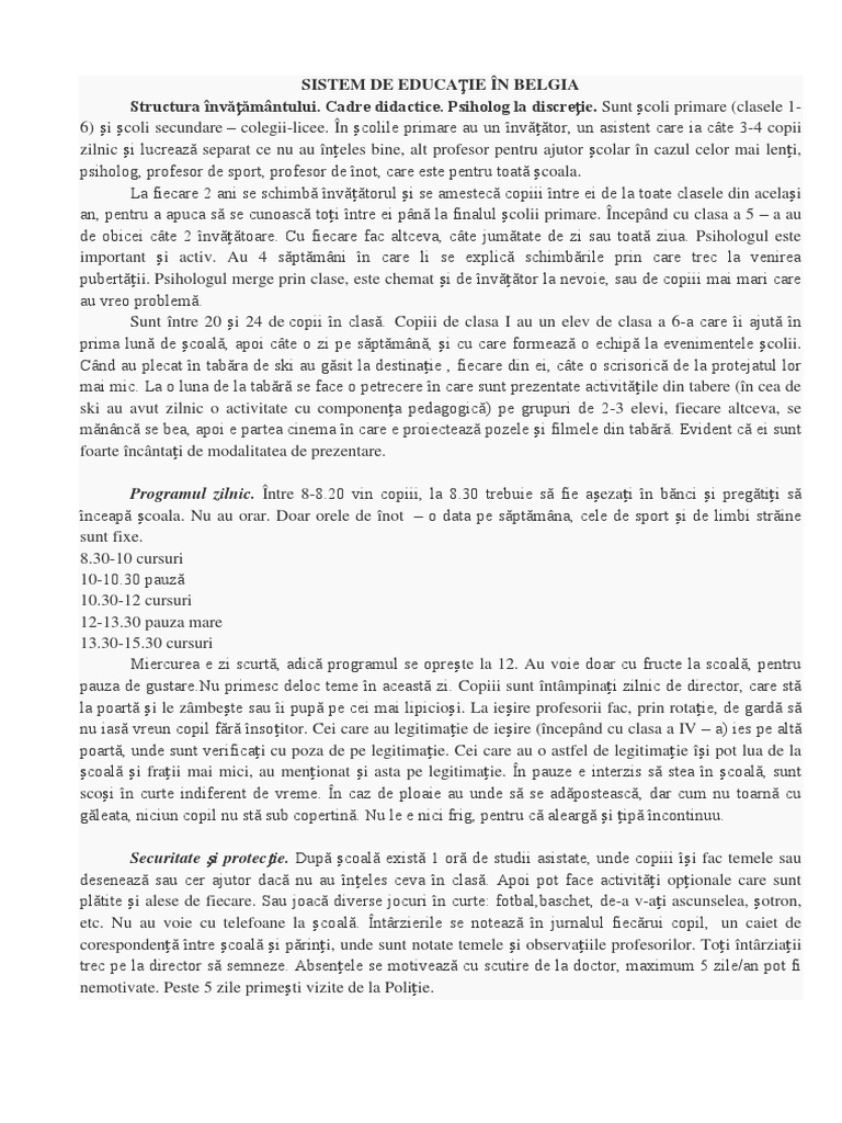 SISTEM DE EDUCAȚIE ÎN BELGIA