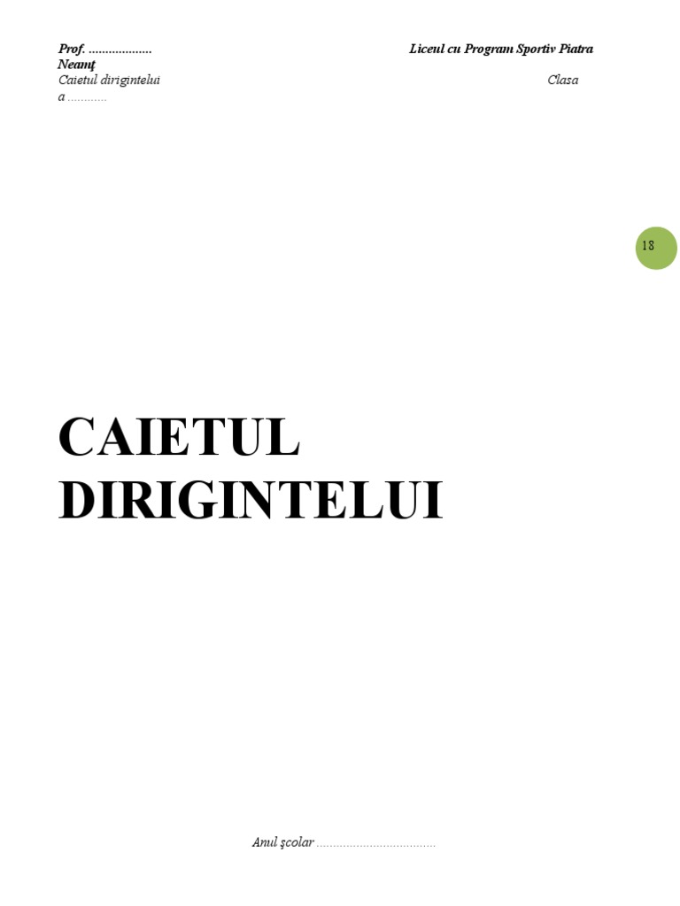 “Caietul dirigintelui", conceput în această formă, reprezintă un util şi facil instrument de lucru pentru profesorul